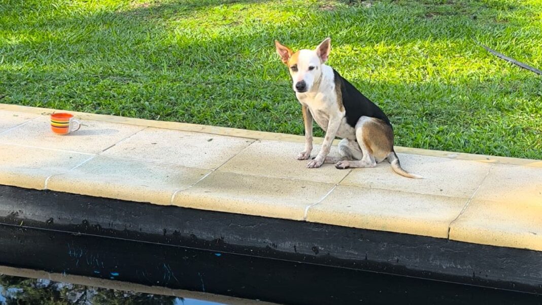 La perra apareció dentro de una finca del lugar, donde fue resguardado provisoriamente. Se solicita la colaboración de la comunidad para difundir la información y ayudar a encontrar a sus dueños.