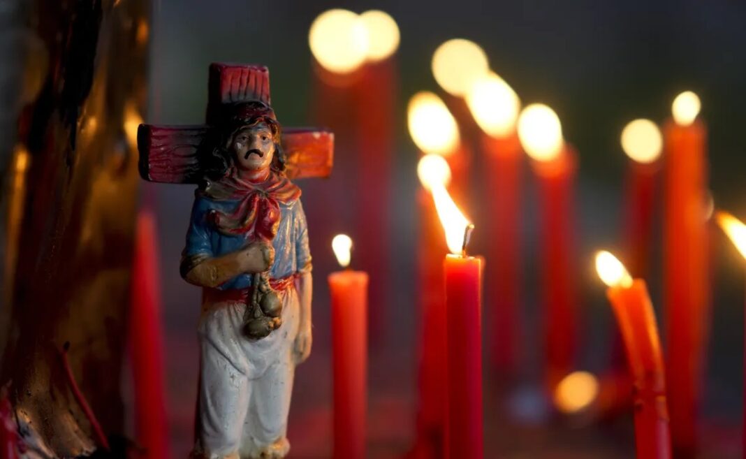 El Gauchito Gil, figura histórica del siglo XIX, se ha convertido en el centro de la devoción popular más arraigada del país. Nacido como bandido rural y desertor, fue ejecutado sin juicio, pero su leyenda sobrevivió gracias al milagro que, según se cuenta, salvó a un niño tras su muerte. Casi siglo y medio después, su figura celeste y roja, con el pañuelo al cuello y la faja, sigue multiplicándose en altares, cruces y sitios de veneración en toda Argentina.