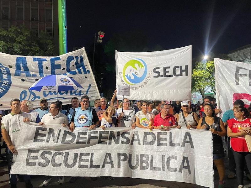Los gremios docentes de la provincia del Chaco convocaron a una concentración provincial para el próximo jueves 23 a las 19 horas. La actividad se realizará de manera simultánea en las plazas centrales de distintas localidades y está dirigida a docentes activos y jubilados.