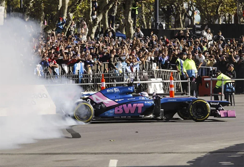El piloto argentino recorrió un circuito callejero en Buenos Aires a bordo de un Lotus E20 de 2012, ante una multitud que colmó las avenidas Libertador y Sarmiento.